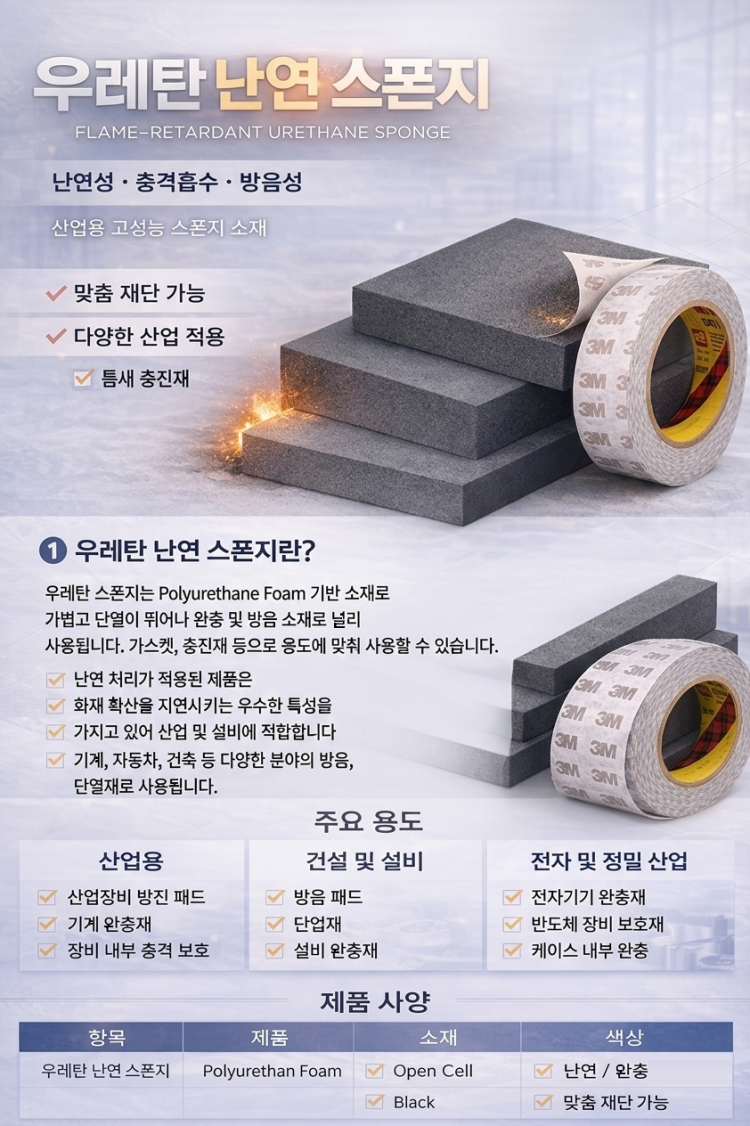 3M 강력 접착 우레탄 난연스폰지 시트